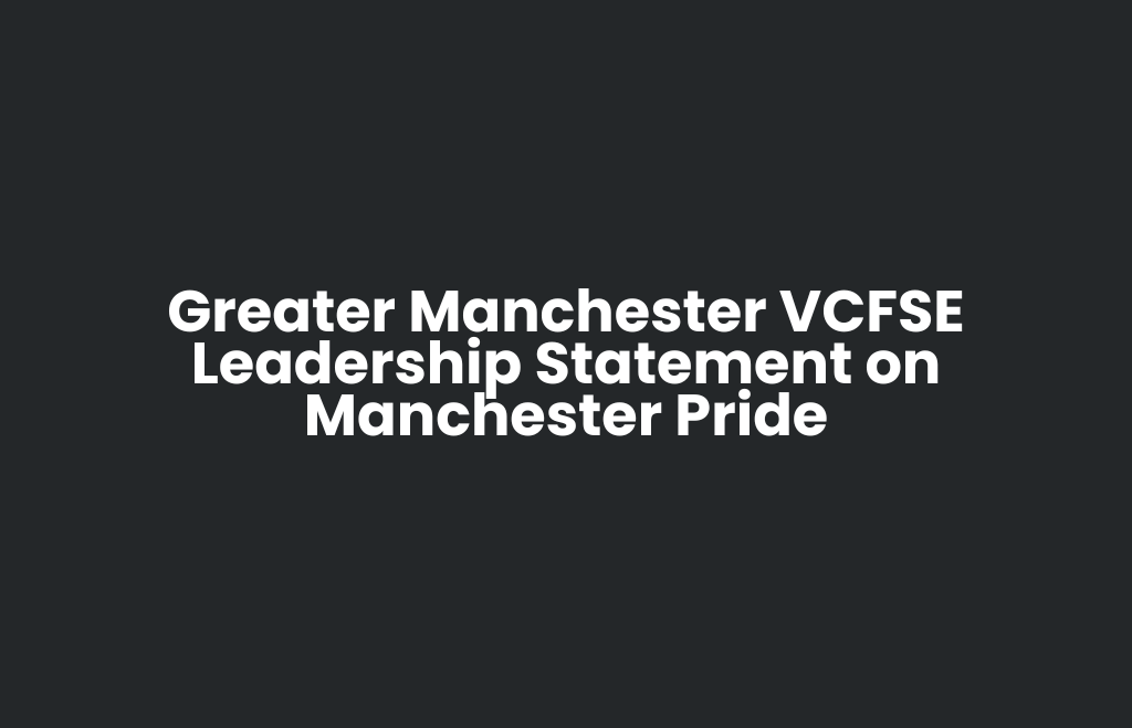 Greater Manchester VCFSE Leadership Statement on Manchester Pride – The Greater Manchester voluntary, community, faith and social enterprise (VCFSE) Leadership Group are saddened and shocked to learn of the collapse of Manchester Pride, which not only affects the LGBT+ community but also the wider VCFSE sector. Continue ReadingThe Greater Manchester voluntary, community, faith and social enterprise (VCFSE) Leadership Group are saddened and shocked to learn of the collapse of Manchester Pride, which not only affects the LGBT+ community but also the wider VCFSE sector.